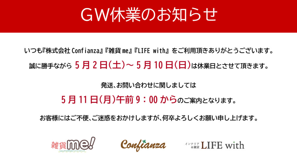 こんにちは、雑貨me!です。いつもご利用いただきありがとうございます。 誠に勝手